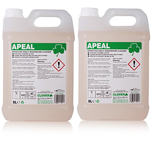 PRODUCT DESCRIPTIONS:A ready-to-use total toilet and washroom cleaner, which boasts a 4-in-1 cleaning operation: cleans, descales, deodorises and disinfects. Apeal incorporates a fresh apple fragrance and a unique rinse additive which reduces water spotting and enhances the appearance of washroom surfaces. Ideal to clean, deodorise, descale and disinfect toilets, urinals, baths, sinks, bidets, showers, tiles and all fixtures and fittings.