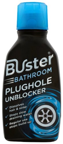 Buster Bathroom Drain Plughole Unblocker is specifically designed to beat bathroom blockages. Its special formulation dissolves hair and soap, leaving your pipes free flowing and fresh.