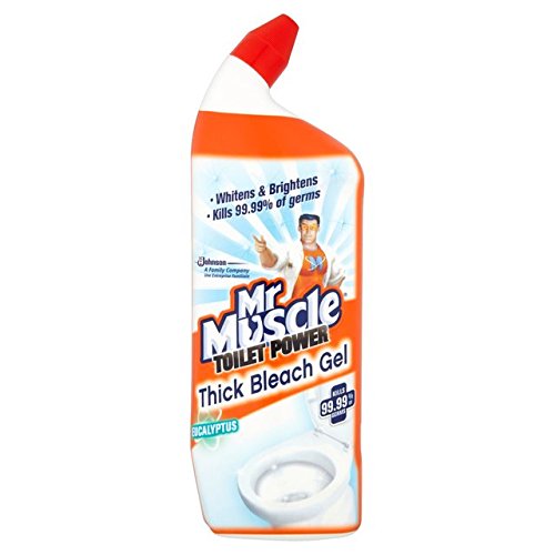 PRODUCT DESCRIPTIONS:Mr. Muscle Toilet Power Thick Bleach Gel has been specifically formulated for regular use throughout the week to keep your toilet hygienic and protect your home from the spread of germs. Our unique cleaning formula kills 99.99% of viruses and bacteria to prevent the growth of unseen nasties before it's too late. The dual action gel whitens and brightens, as well as being infused with the fresh fragrance of Eucalyptus to leave your toilet feeling and smelling naturally fresh.Mr. Muscle Toilet Power Thick Bleach Gel can be used to clean and disinfect for a safer, more hygienic toilet. Simply open the cap by squeezing both pads and unscrew. Using the pointed tip, squeeze the bottle and spread evenly under the rim of the toilet bowl. Gently brush above and below the waterline and flush. For even better results it can be left to work throughout the night. If disinfection is required, continue on from the above by reapplying the product for 15 minutes and then flushing once again. We recommend that for long-lasting freshness, the gel is used at least three times per week.Mr Muscle is the leading brand when it comes to tackling tough cleaning jobs around the home. From disinfecting surfaces to removing burnt-on grease in the kitchen and limescale in the bathroom, we have it covered with five pioneering ranges of specialised products. Because of this, Mr Muscle is not just a household name - it's a household staple, proving time and again that we can cut through the grime. Since 1986, Mr Muscle has grown with and adapted to your needs, and for that reason we've become a trusted name recognised for our superior quality products. But our mission to eliminate the need for hard scrubbing nationwide is far from over … Let Mr Muscle do the work for you!SC JohnsonA family company since 1886.Fisk JohnsonWhitens & brightensKills 99.99% of germsCleans hygienicallyFresh eucalyptus scentFor Total Cleaning of Your Bathroom Use Mr Muscle 5in1 Bathroom & Toilet