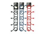 PRODUCT DESCRIPTIONS:The plastic rack comes with 10 durable hooks - five hooks for large items and five for lightweight garments. Ideal for purses, jackets, sweaters, belts and more! Has five pre-cut holes for wall or door mounting (screws not included). Comes in dark shades of blue, green, burgundy or white. Rack comes on a tie card with hanging hole. Measures 18 quot; in length with a 2 7/8 quot; width. Large hooks are nearly 3 1/2 quot; long and small hooks are almost 2 quot; long.--25per pack